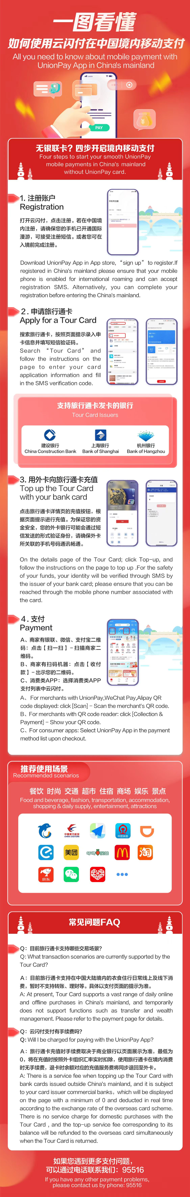 “旅行通卡”是指對于無銀聯卡的入境人員,可憑護照等證件可在云閃付APP線上申領、充值“旅行通卡”,使用云閃付APP掃碼支付。